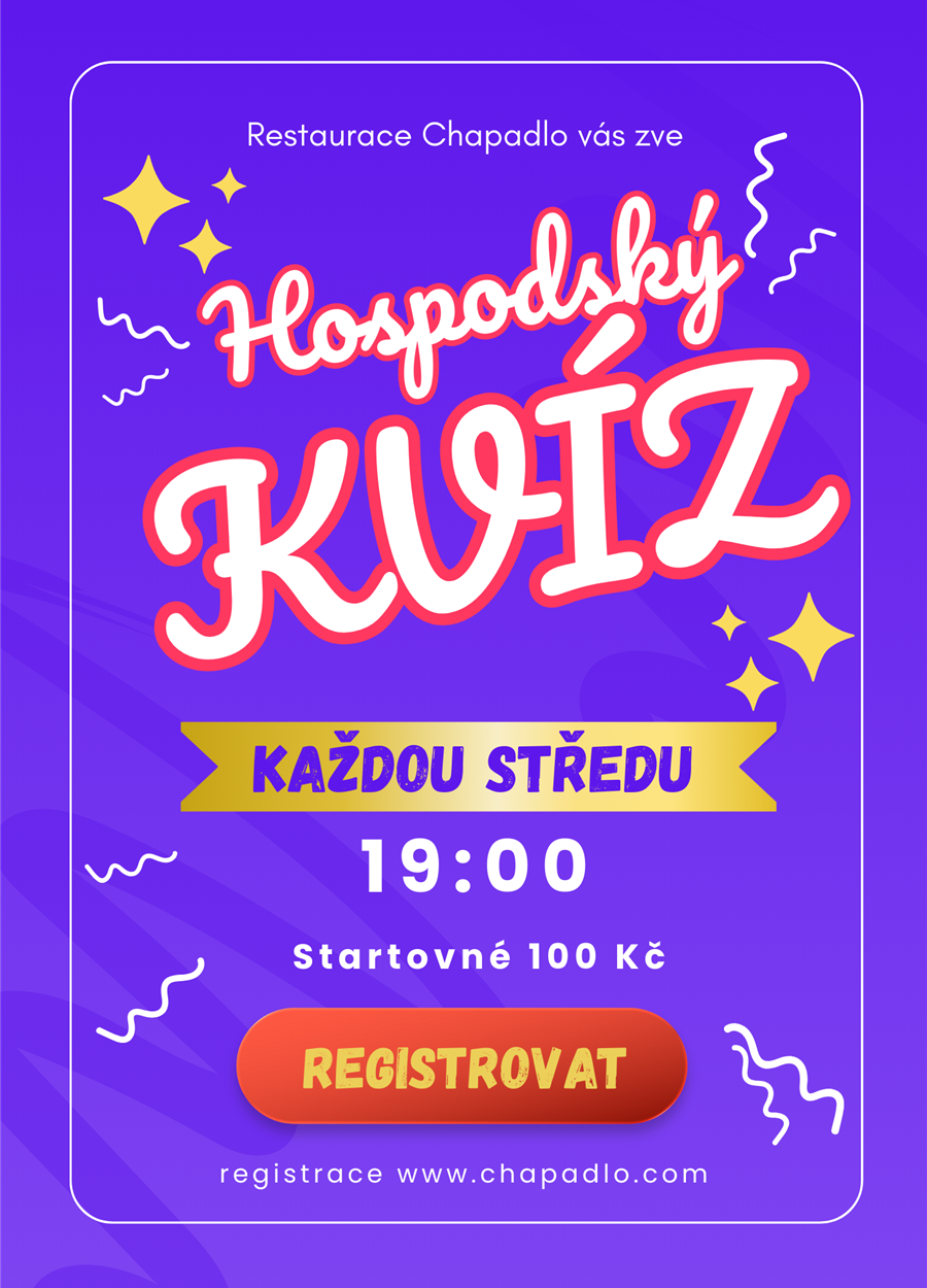 Přijďte si k nám zahrát zábavný kvíz každou středu! Vítězný tým získává 50% slevu na konzumaci, ale ani ostatní týmy neodejdou s prázdnou.